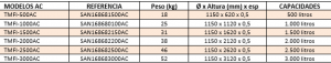 - TMFI-3000AC: (Peso 52 Kg / Ø 1150 x 3120 mm x esp 0,5)